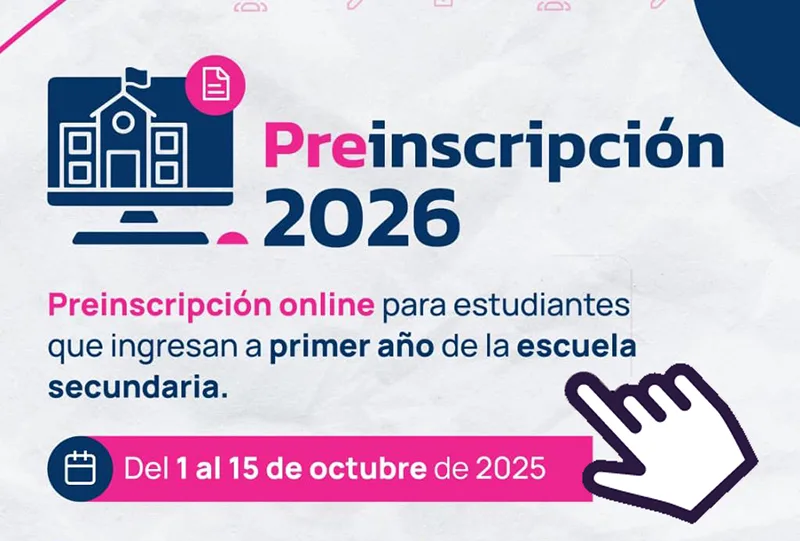 El Ministerio de Educación del Chaco informa que el período de preinscripción para el ingreso a primer año del nivel Secundario 2026, de todas las unidades educativas públicas de gestión estatal, social y comunitaria se realizará del 1 al 15 de octubre de este año. Tal como viene realizándose en los últimos años, será de manera virtual a través del Sistema Integral de Educación (SIE) de la provincia, en la plataforma Tu Gobierno Digital. Quienes no cuenten con conectividad, podrán hacerla de manera presencial, en formato papel, ante la unidad educativa seleccionada y dentro del plazo mencionado.