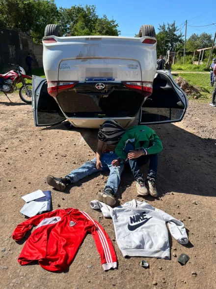 En un momento dado, el vehículo volcó tras impactar con otro. Luego del accidente comenzaron a salir varias personas del auto para intentar darse a la fuga, pero tras no lograr su cometido, fueron detenidos por los uniformados.