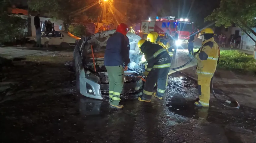 Arribaron al lugar bomberos de la Policía, quienes sofocaron el foco ígneo. Además, establecieron que se trataba de un automóvil Chevrolet Cruce.