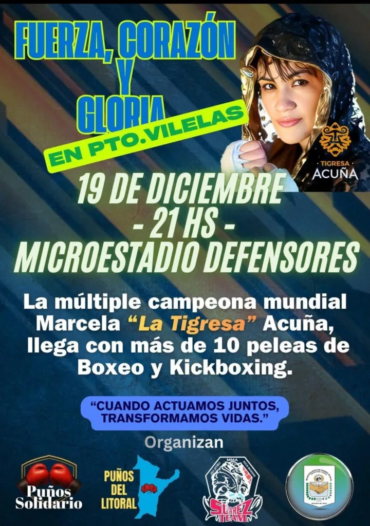 El próximo 19 de diciembre, Marcela Acuña se presentará en nuestra localidad con una exhibición de boxeo en el microestadio del Club Defensores, en un evento que promete convocar a vecinos, visitantes y amantes del deporte.