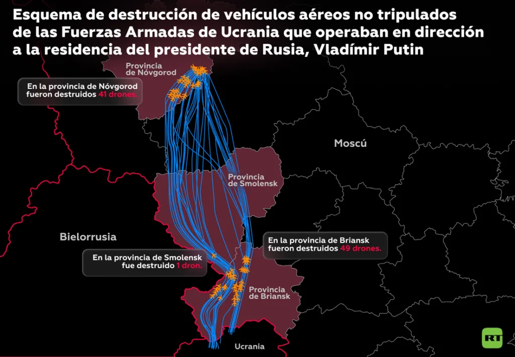 A finales de diciembre, el ministro de Relaciones Exteriores de Rusia, Serguéi Lavrov, informó que el régimen de Kiev intentó perpetrar un atentado terrorista con 91 vehículos aéreos no tripulados de largo alcance contra una residencia oficial del presidente situada en la provincia de Nóvgorod. Los drones fueron derribados por sistemas de defensa antiaérea rusa.