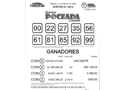 22 de Febrero, 2026 La Quiniela Poceada Chaqueña realizó este sábado 21 de febrero su sorteo Nº 2273, sin que se registraran ganadores con cinco aciertos, por lo que el pozo principal quedó vacante.