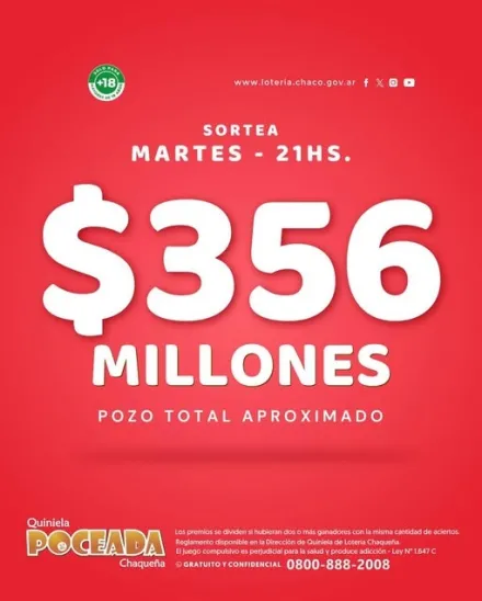 Desde Lotería Chaqueña informaron que los premios correspondientes a este sorteo caducan el 8 de marzo de 2026. Además, anticiparon que el pozo estimado para el próximo sorteo asciende a $355.379.996,10, generando gran expectativa entre los jugadores de toda la provincia.