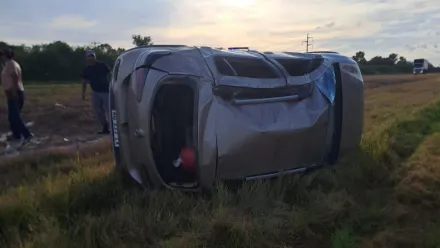Según el propio relato del chofer del automóvil, intentó esquivar un pozo ubicado sobre la ruta, lo que desembocó en el accidente, con el auto volcando hacia su costado derecho de la vía.